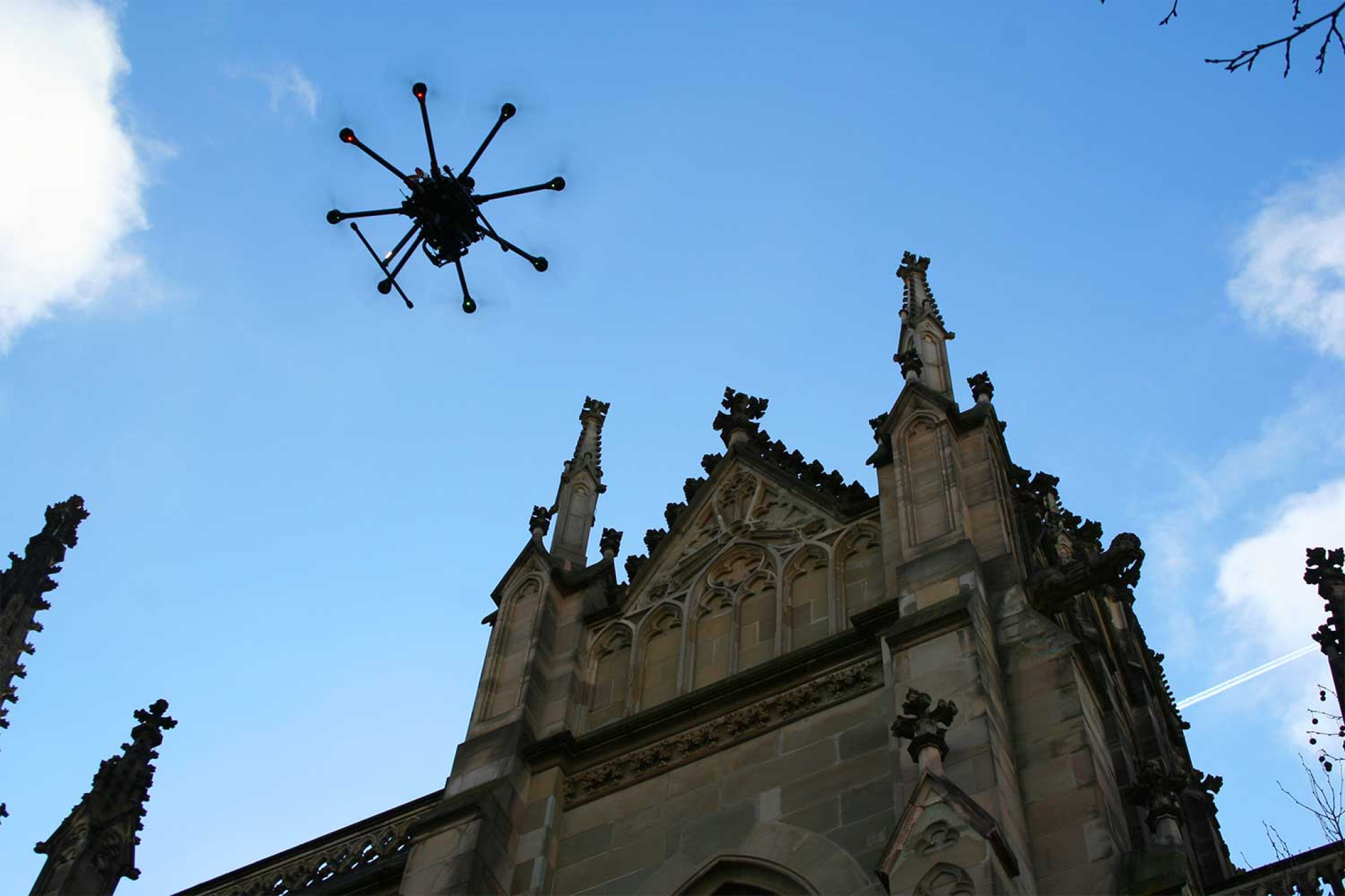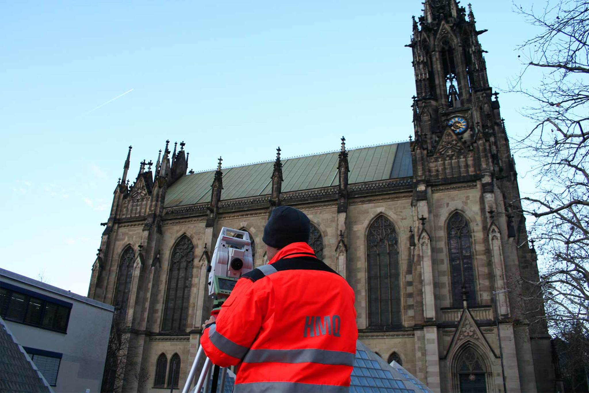 Alors que HMQ AG a entièrement mesuré la cathédrale Grossmünster de Zurich (ZH) à l'aide d'un scanner laser 3D, « seules » les façades de l'église Elisabethenkirche ont été enregistrées par photogrammétrie à l'aide d'un drone. Au total, plus de 17 000 photos aériennes haute résolution, représentant un volume de données d'environ 250 gigaoctets, ont été prises à l'aide d'un drone (également appelé multicoptère) équipé d'un appareil photo numérique. Les images photogrammétriques ont été complétées par des données de balayage laser.