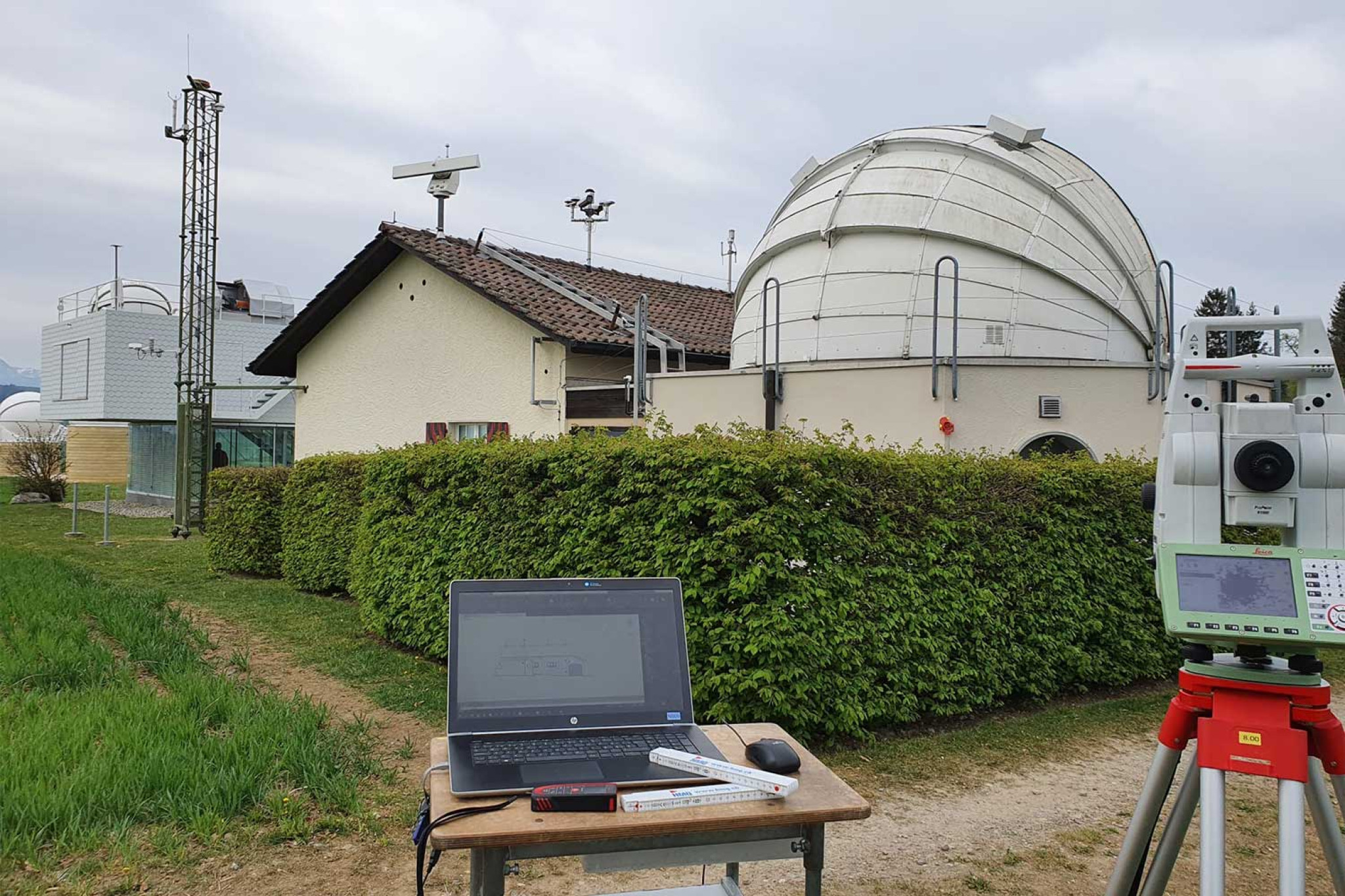 La sociétéHMQ AGréalise un relevé topographique du bâtiment Geostation Zimmerwald et élabore des bases de conception numériques fiables sous forme de plans d'étage, notamment des étages en coupole, ainsi que des vues de façade de l'observatoire.