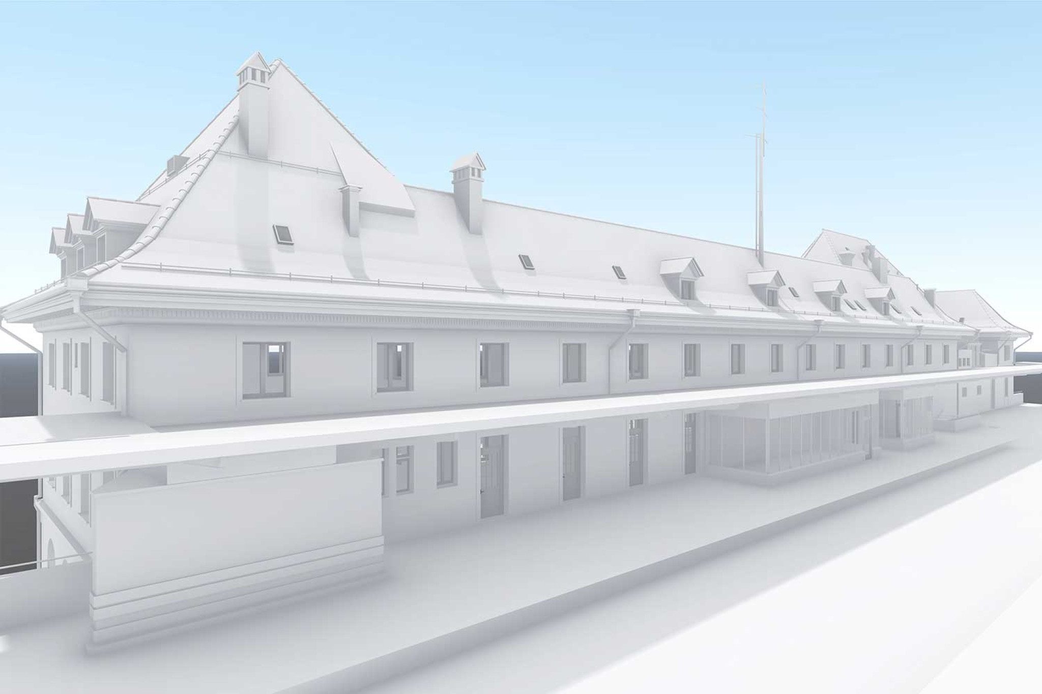 La société HMQ AG a réalisé un relevé topographique du bâtiment à l'aide d'un scanner laser 3D à la gare CFF de Fribourg FR. À partir du nuage de points 3D, un modèle BIM 3D complet a été modélisé dans ArchiCAD. Le niveau de détail géométrique (Level of Detail LOD) du relevé du bâtiment a été réalisé selon une norme conforme à la spécification HMQ et s'appuie sur la norme SIA 2051.