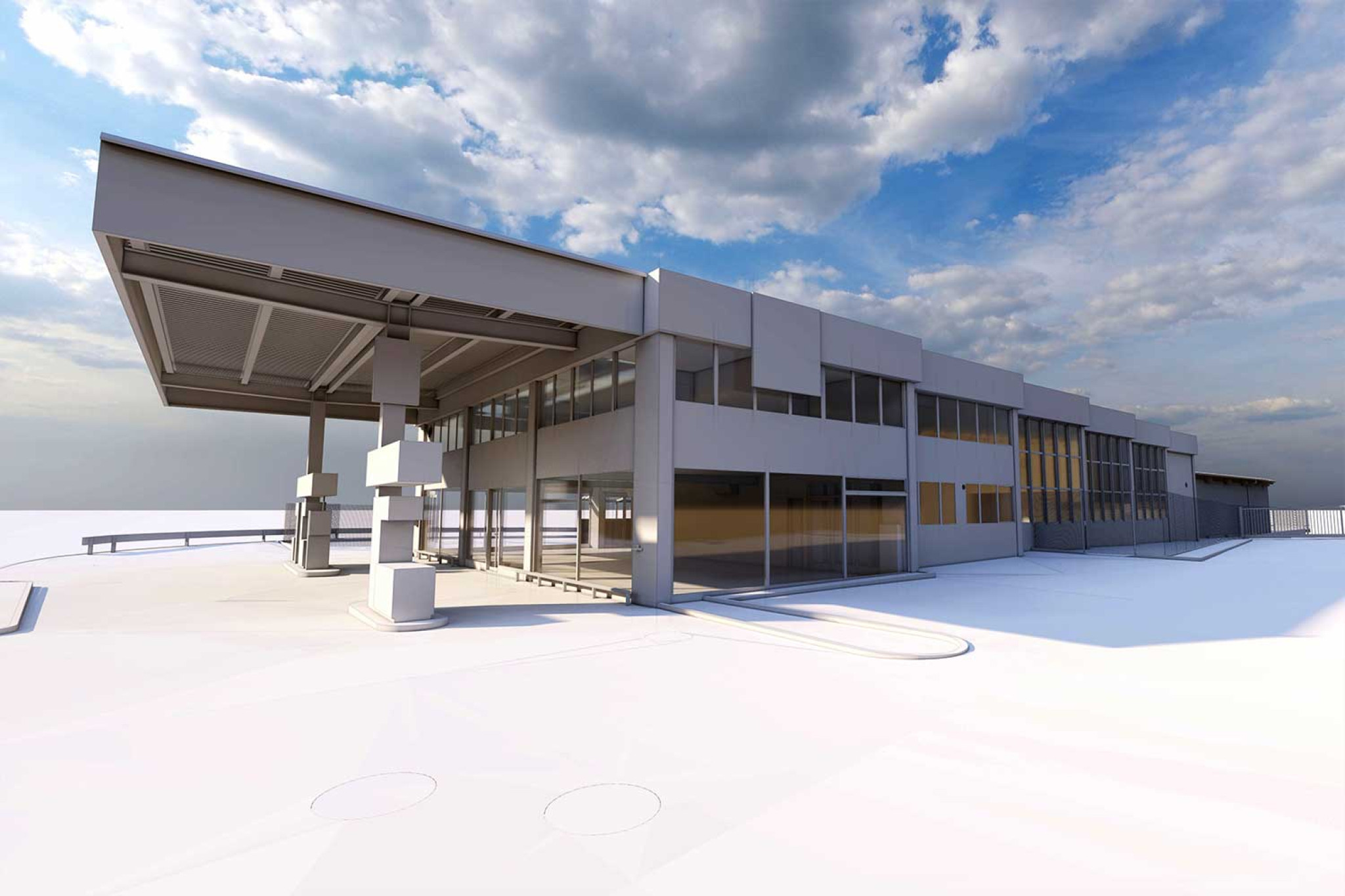 La société HMQ AG a réalisé à Brigue VS, dans le canton du Valais, un relevé topographique d'un bâtiment industriel avec station-service attenante. Sur la base des mesures effectuées, un modèle 3D a été créé dans ArchiCAD afin de servir de base fiable pour la conception numérique du projet.