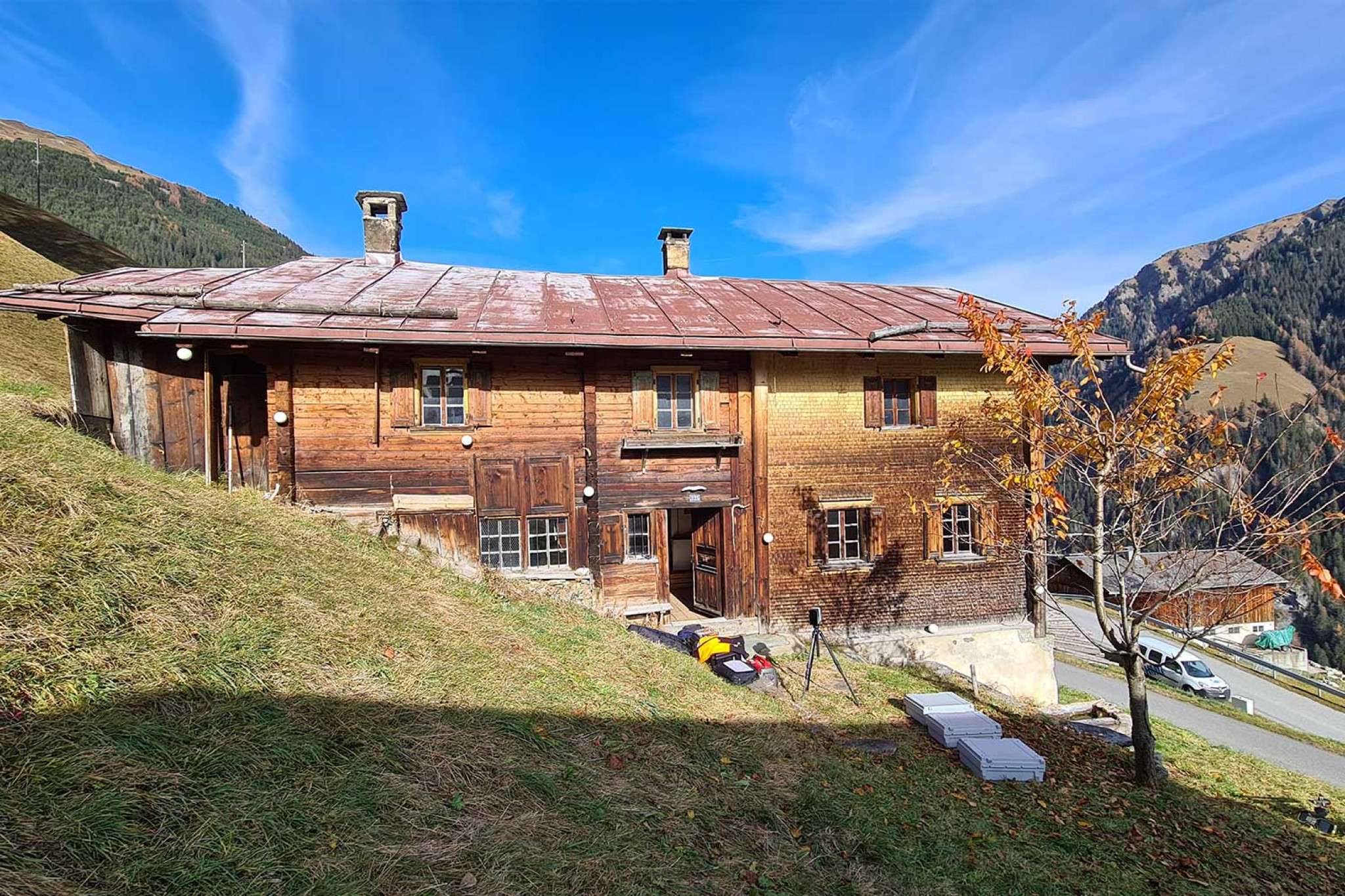 Dans la vallée de Safiental, dans le canton des Grisons, la société HMQ AG a réalisé un relevé architectural d'une maison Walser. Le relevé du bâtiment a été réalisé à l'aide d'une technique de mesure sans contact, le balayage laser 3D. À partir des données brutes du nuage de points, quatre plans, six coupes et quatre vues de façade ont été dessinés à l'échelle 1:50. La méthode de mesure au scanner laser garantit que des évaluations supplémentaires peuvent être effectuées ultérieurement si nécessaire.
