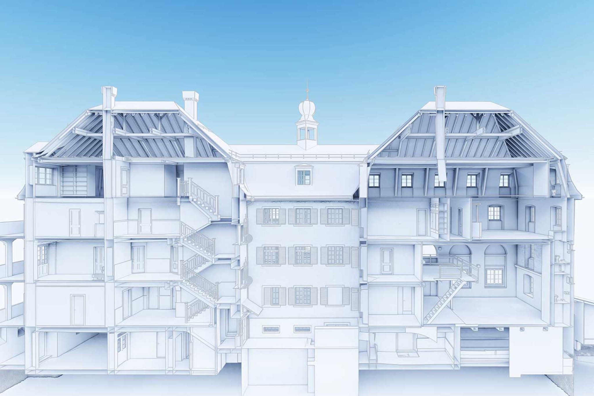 À Andeer, HMQ AG a numérisé avec précision un bâtiment centenaire à l'aide d'un scanner laser 3D. Le relevé du bâtiment a permis de créer un modèle architectural précis qui reflète fidèlement les caractéristiques historiques du bâtiment. Le modèle 3D a été réalisé dans ArchiCAD et fourni sous forme de fichier IFC afin de préserver l'intégrité architecturale du bâtiment.