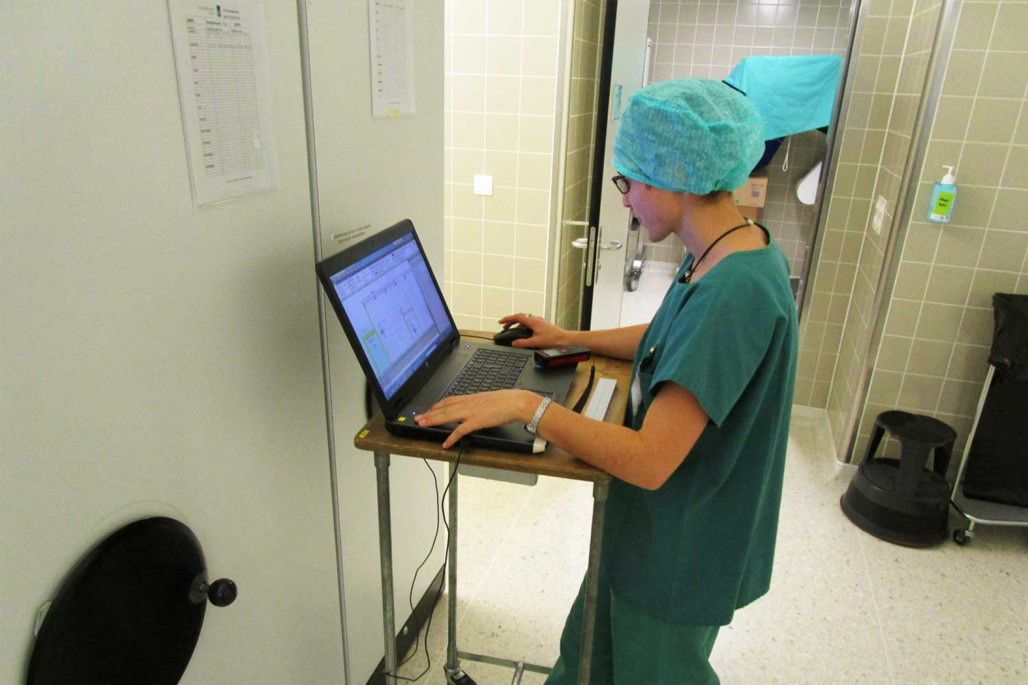 À l'hôpital universitaire de Zurich, HMQ AG a réalisé un relevé de l'ensemble de l'aile « Nord 1 », comprenant douze étages en tour et huit étages en socle. La structure des murs (maçonnerie, béton, plâtre, isolation, etc.) a été reprise des plans d'ingénierie existants et intégrée dans les relevés de HMQ AG. Chaque pièce a également été identifiée par un tampon indiquant son numéro, sa désignation, les matériaux utilisés pour le sol, les murs et le plafond, ainsi que la superficie en mètres carrés (surface brute BF, surface vitrée FF) et la hauteur de la pièce (RH) en mètres.
