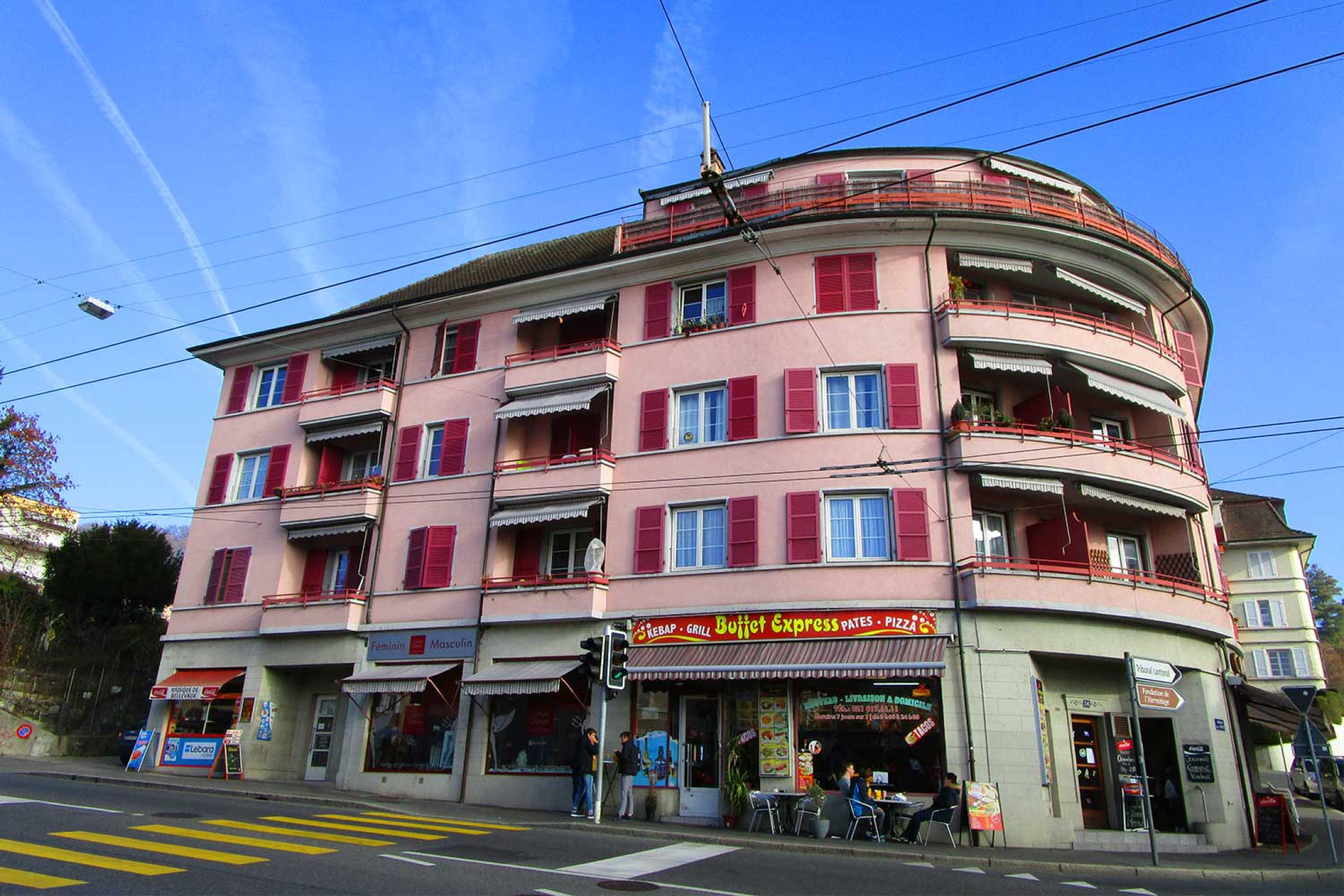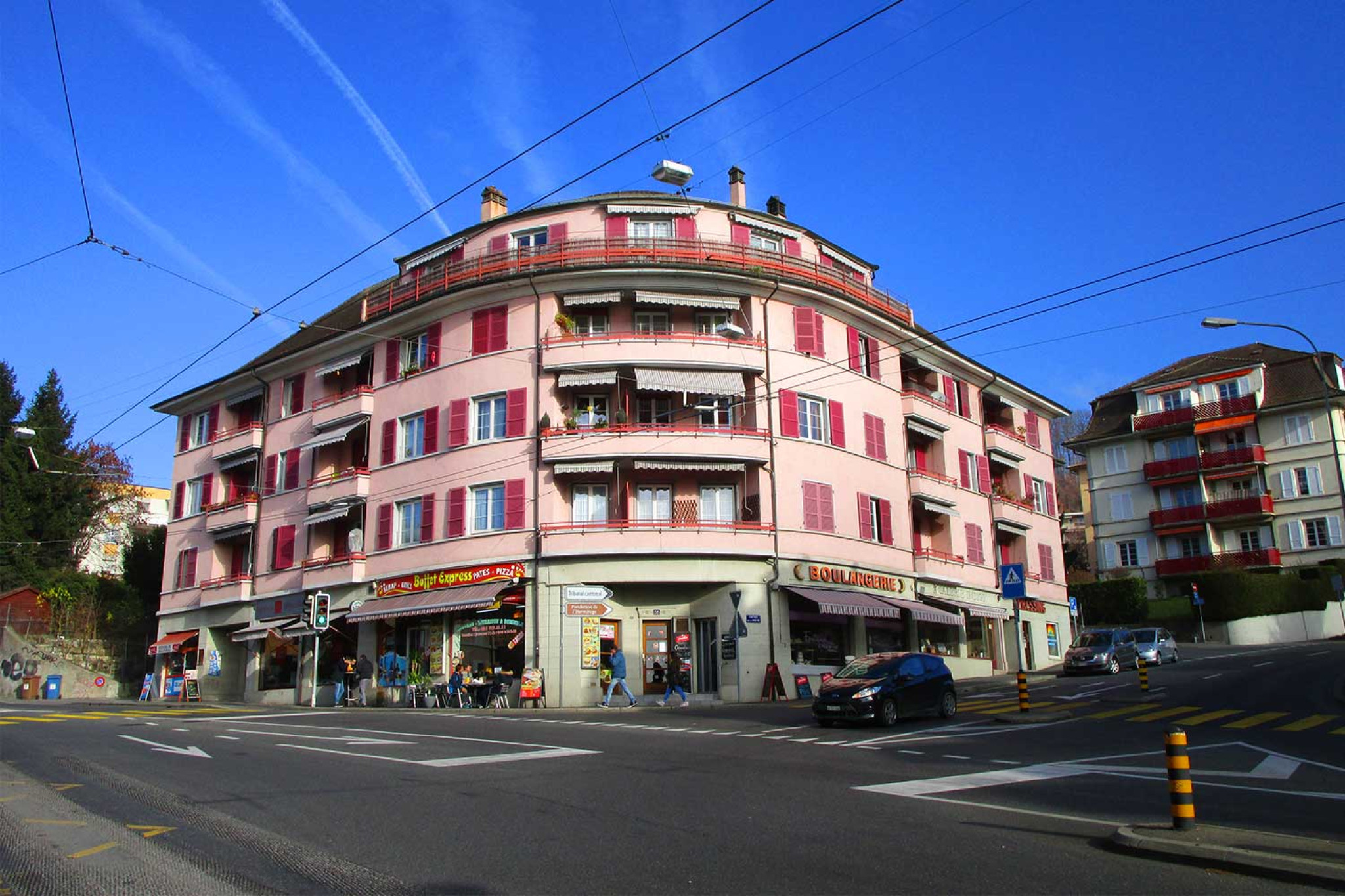 À Lausanne, dans le canton de Vaud, HMQ AG a réalisé un relevé d'un immeuble résidentiel et commercial. Les silhouettes des façades, y compris le toit, ont été relevées et les hauteurs individuelles des étages ont été représentées dans les vues. De plus, les deux étages mansardés ont été mesurés et des plans d'étage ainsi que deux coupes transversales ont été élaborés pour les étages correspondants.