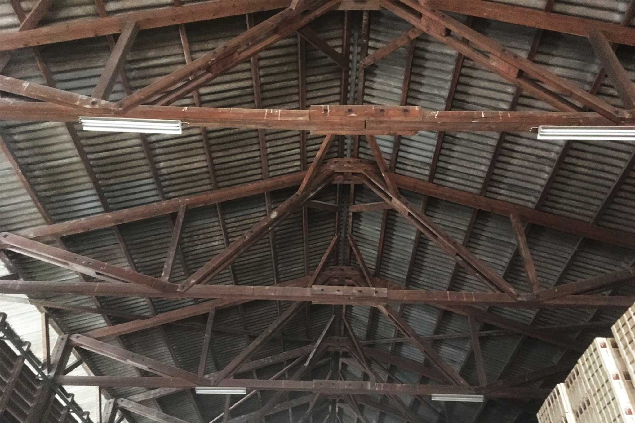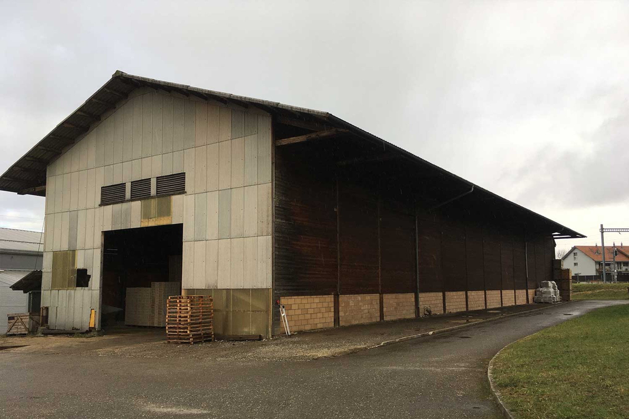 La société HMQ AG a réalisé un relevé numérique d'un entrepôt situé à Kerzers (FR). Elle a ainsi établi le plan d'ensemble avec la structure du toit, une coupe transversale et les quatre vues de façade. La structure porteuse du toit, composée en grande partie de bois, devait notamment être déterminée avec précision pour le calculateur de structure et la suite de la planification du projet.