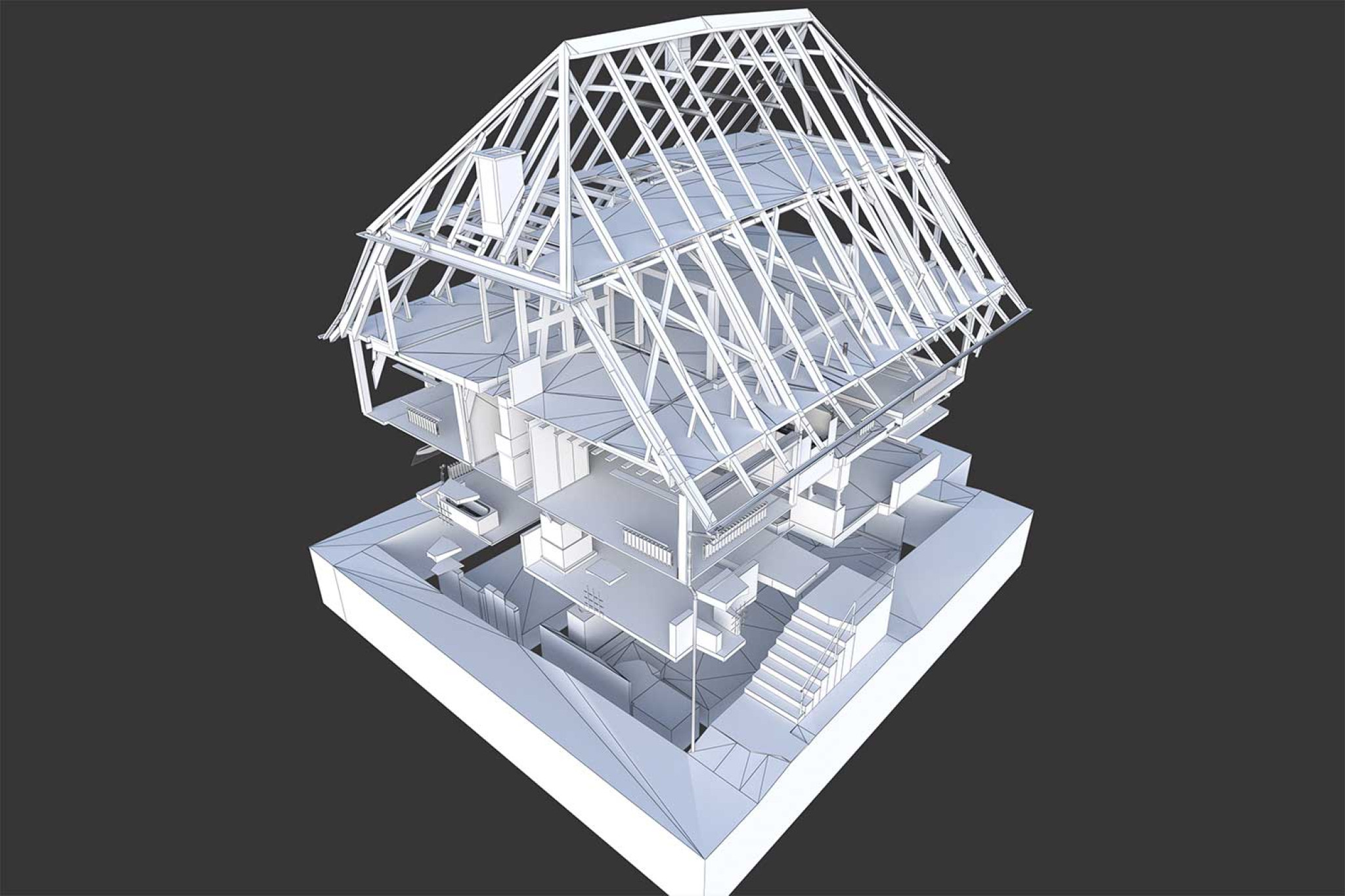 HMQ AG a réalisé un relevé du bâtiment classé monument historique « Burg » à Oberriet SG à l'aide d'un scanner laser 3D. À partir des mesures du bâtiment, un modèle 3D fidèle à la réalité avec un niveau de détail élevé (niveau de détail 1:20) a été modélisé dans le logiciel de CAO ArchiCAD.